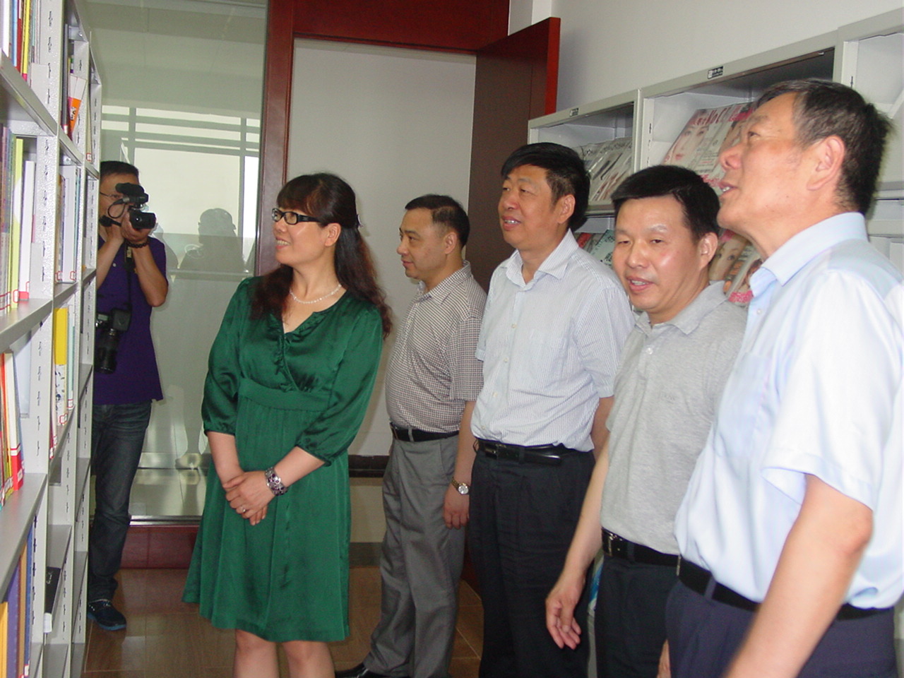 右圖為楊紀(jì)朝副會(huì)長(右一)一行在市委、市經(jīng)信委和公司領(lǐng)導(dǎo)的陪同下在公司圖書室參觀的場(chǎng)景。