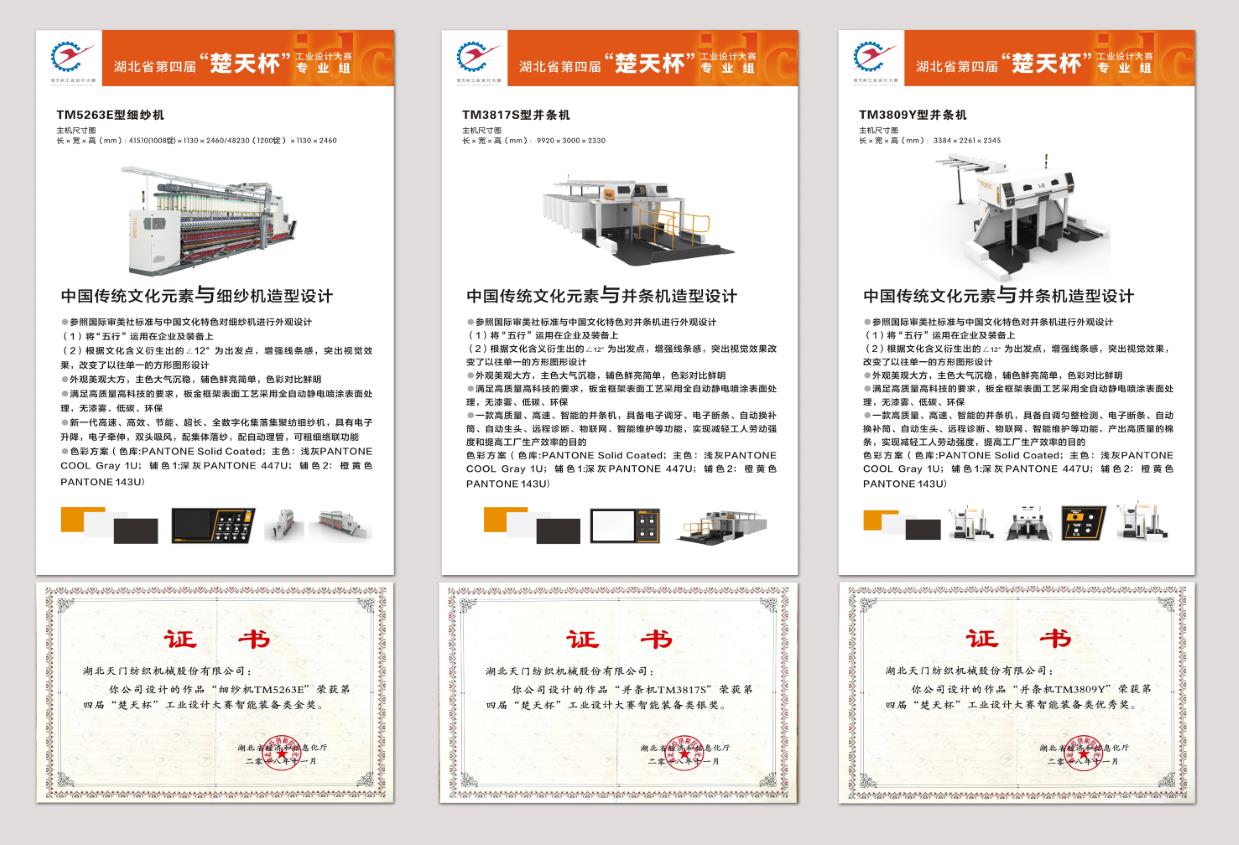 天門紡機獲獎的三個產品申報平面設計和獲獎證書