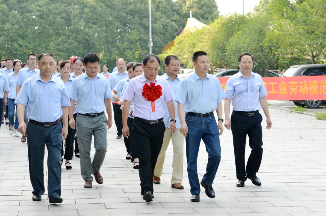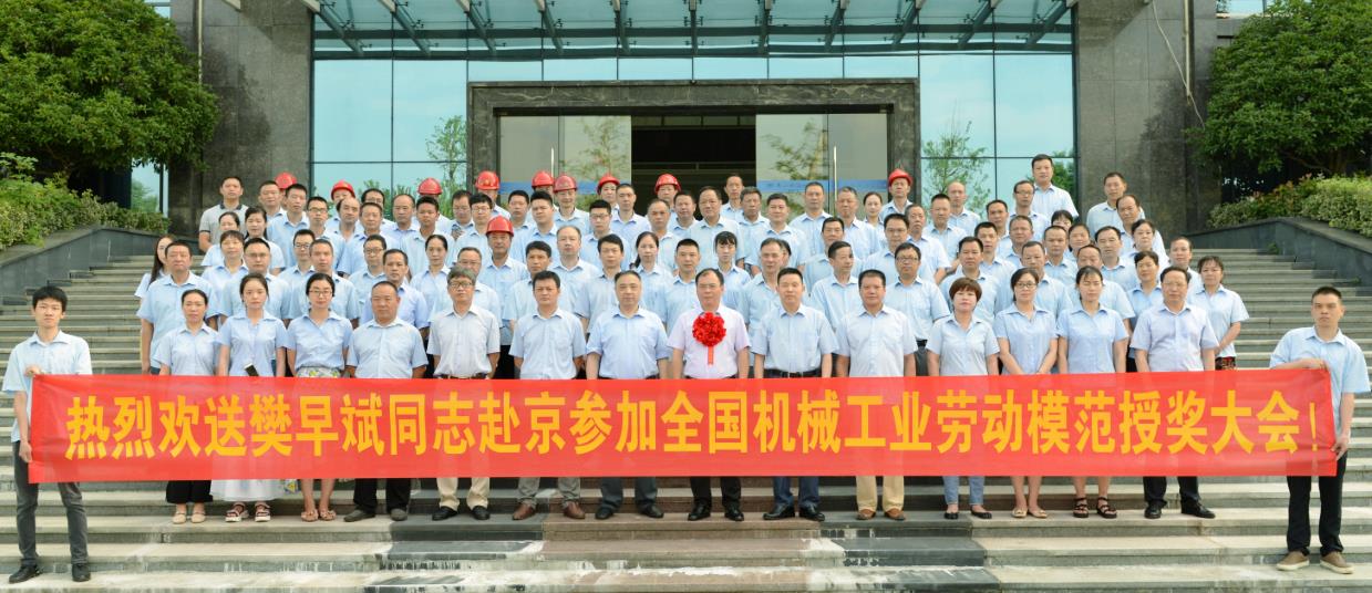 清風(fēng)徐徐,碧空萬里,2019年6月24日上午8時(shí),天門紡機(jī)科技樓前人頭攢動(dòng),鑼鼓齊鳴,熱鬧非凡。歡送公司員工樊早兵赴京參加中國機(jī)械工業(yè)聯(lián)合會(huì)舉辦的2019年度勞動(dòng)模范表彰大會(huì)。