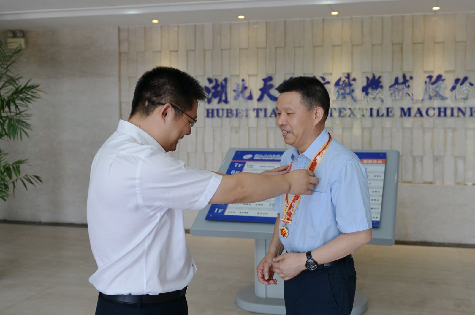 天門市委副書記雷華為沈方勇董事長(zhǎng)佩戴紀(jì)念章