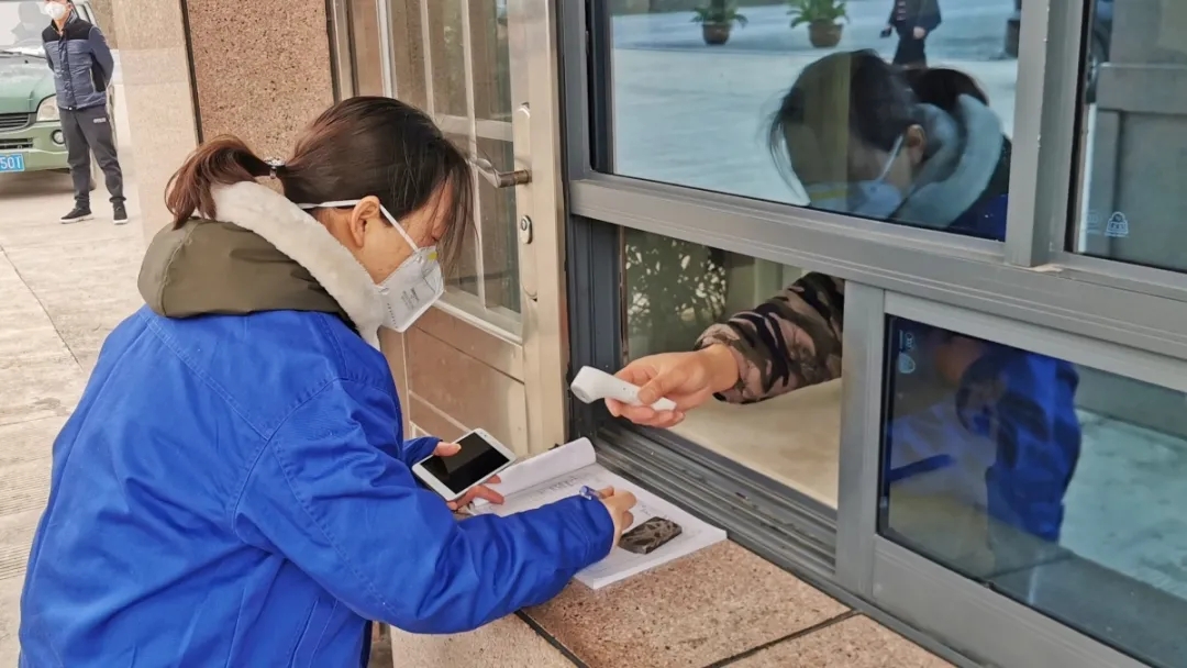 經(jīng)過防控人員一系列的查看通行證、反復核對名單,測量體溫登記后,王克文終于將參加發(fā)貨的員工接到公司
