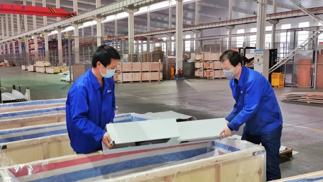 青年員工楊利軍、趙志祥進行附件的裝箱工作