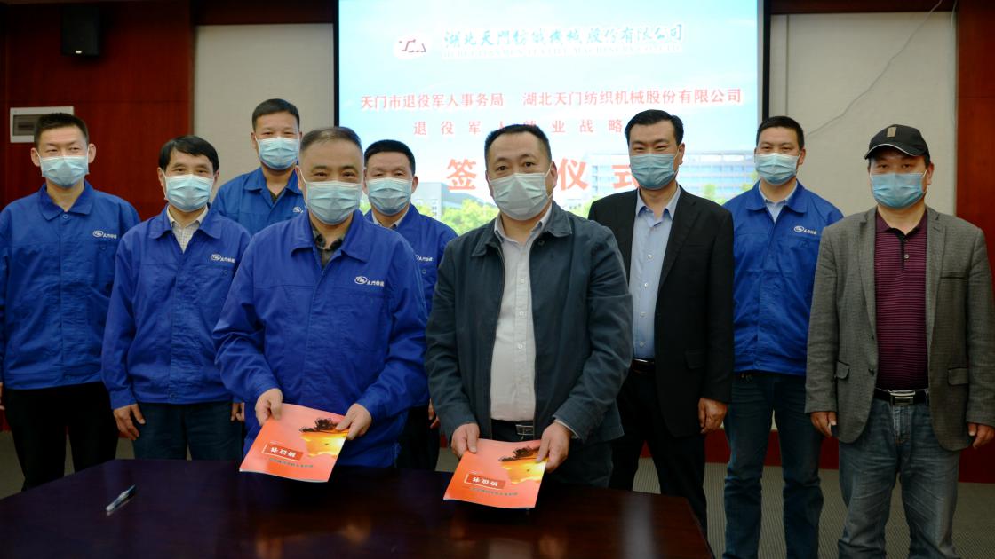 4月23日下午,天門市退役軍人事務(wù)局與天門紡機(jī)舉行退役軍人就業(yè)戰(zhàn)略合作簽約儀式,天門市退役軍人事務(wù)局副局長李文超、天門紡機(jī)總經(jīng)理焦倫進(jìn)分別代表雙方簽約。