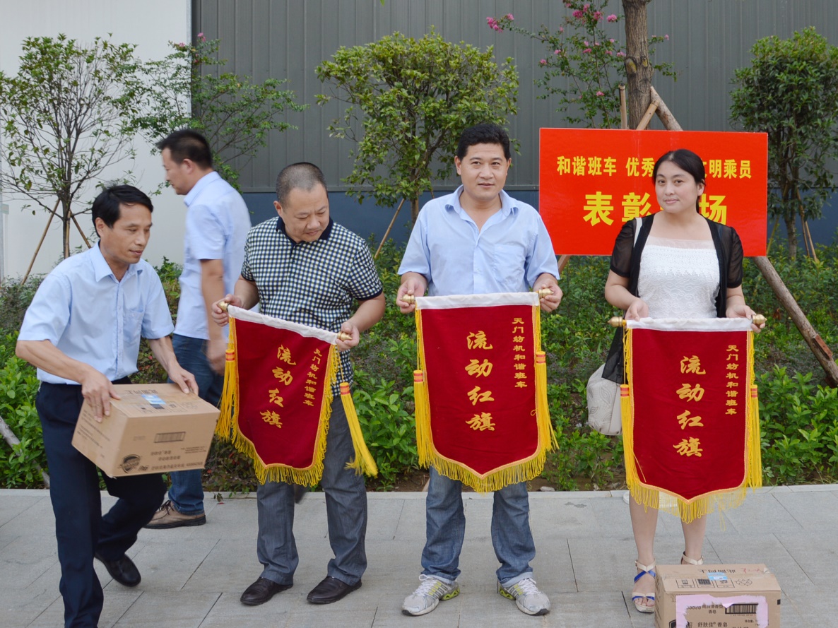 建章立制,令行禁止 天門紡機(jī)地處天門經(jīng)濟(jì)開發(fā)區(qū),數(shù)百名員工居住分散,通勤距離普遍在8—10公里。為此,公司專門制定出臺(tái)了《上下班交通管理規(guī)定》,區(qū)分不同員工的實(shí)際情況,采取“統(tǒng)一乘坐通勤車、私家車拼車、自行上下班交通”等方式,并給予相應(yīng)的交通補(bǔ)助,有效解決了員工上下班交通問題。同時(shí),把遵守交通規(guī)則細(xì)化到規(guī)定之中,把交通安全納入一項(xiàng)重要的廠規(guī),并安排行政管理人員對(duì)公務(wù)車、私家車、通勤車進(jìn)行經(jīng)常性的督導(dǎo)檢查,對(duì)員工的駕駛證、行駛證進(jìn)行備案,保證駕駛員、車輛、證件合法合規(guī),為交通文明、安全出行提供了有力的制度保障。