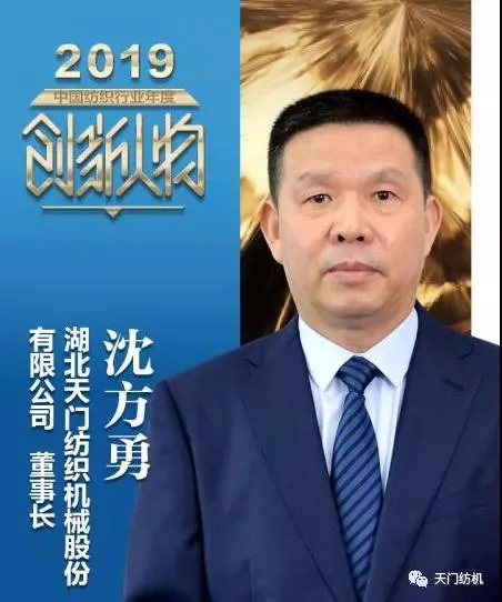 天門紡機董事長沈方勇作為“2019中國紡織行業(yè)年度創(chuàng)新人物”獲獎?wù)?,將于近期赴山西太原參加中國紡?lián)第四屆五次理事會,并接受表彰。