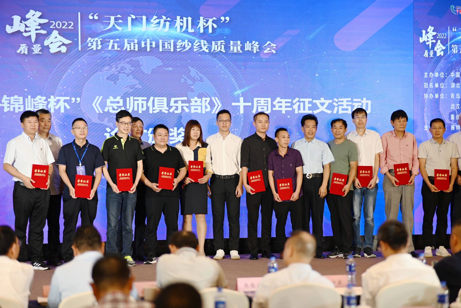 隨后,大會隆重舉行了“天門紡機杯”第五屆中國紗線質量峰會論文頒獎活動和“烏斯特-錦峰杯”《總師俱樂部》十周年征文頒獎活動。