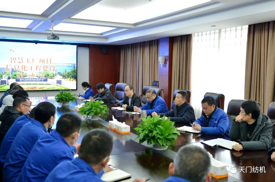12月6日上午,天門(mén)紡機(jī)“智慧工廠(chǎng)”項(xiàng)目信息化工程建設(shè)啟動(dòng)會(huì)在總經(jīng)理焦倫進(jìn)主持下隆重召開(kāi)。天門(mén)紡機(jī)董事長(zhǎng)沈方勇、武漢銀橋總經(jīng)理吳慶文及副總經(jīng)理鄧俊杰出席了會(huì)議。
