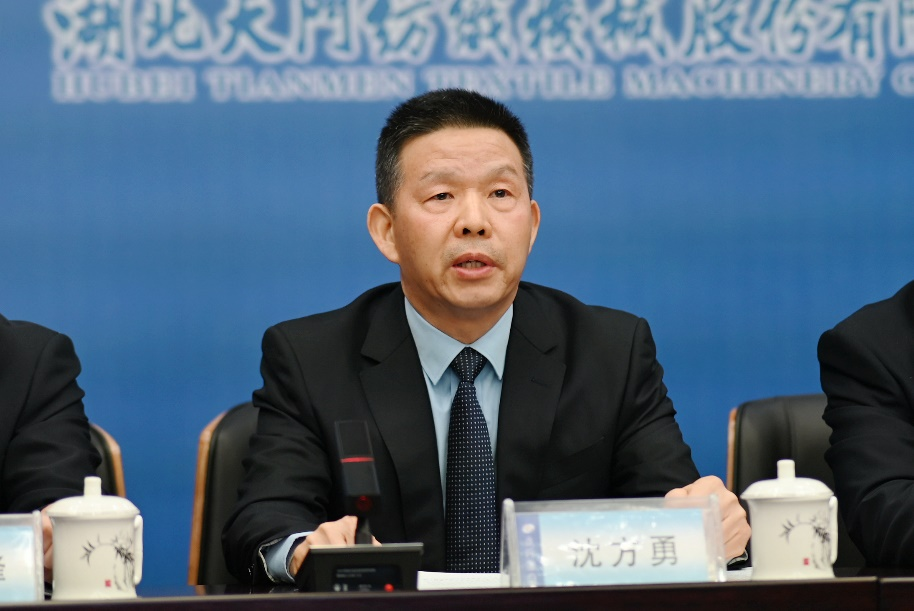 媒體提問結(jié)束后,沈方勇董事長(zhǎng)率公司同仁向大力支持召開本次媒體見面會(huì)的天門市委宣傳部、融媒體中心及蒞臨會(huì)議的各媒體朋友表達(dá)了感激之情,并提前向長(zhǎng)期支持關(guān)心天門紡機(jī)發(fā)展的各界同仁和廣大用戶拜年。