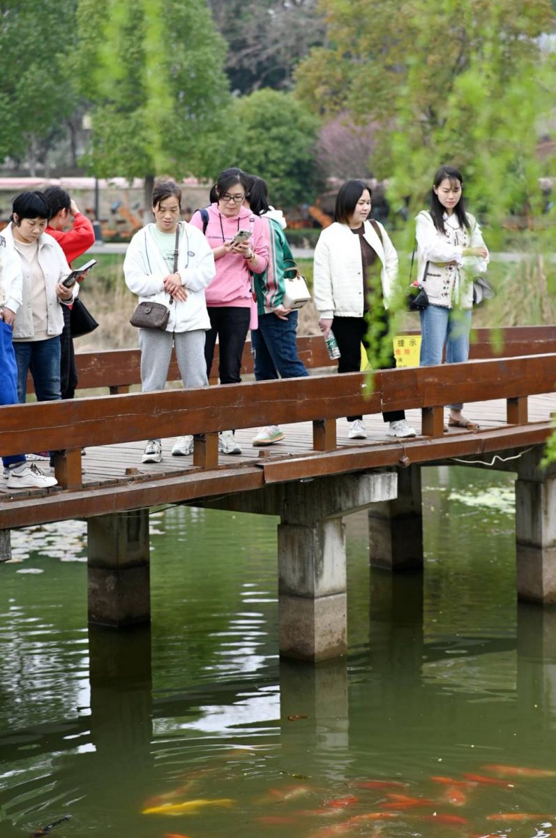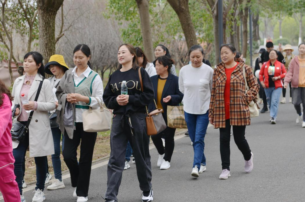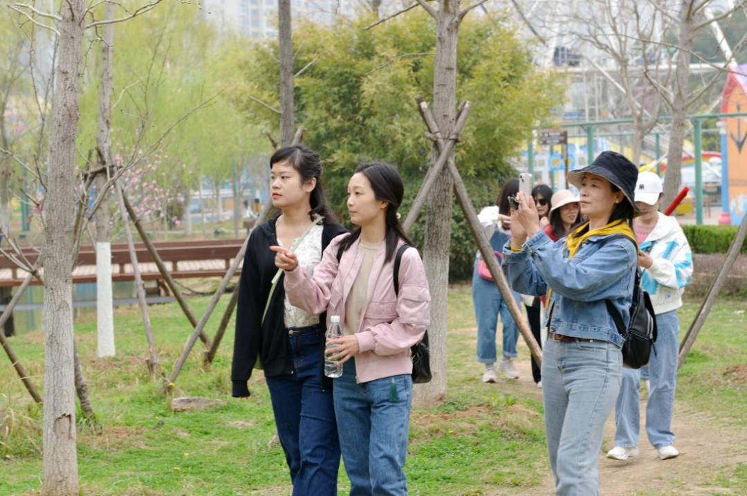 伴隨徐徐春風(fēng),“娘子軍”踏上了旅程。大巴上,大家一起玩游戲,唱車載KTV,一路洋溢著歡聲笑語,轉(zhuǎn)眼便抵達(dá)第一站——后官湖國家濕地公園。