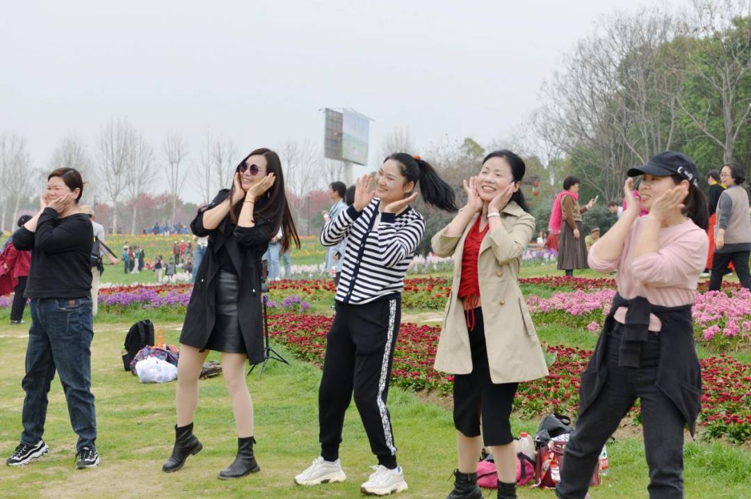 告別后官湖濕地公園,大家乘車來到武漢花博匯。展眼望去,這里已是花的海洋?;始页?、紅馬克、紫云、陽光等眾多品種的郁金香爭奇斗艷,紫羅蘭、金盞菊、角堇、羽衣甘藍(lán)、雛菊等花卉也競相綻放,一步一景,意趣橫生。大家沐浴著春風(fēng),淌洋在花間小道上,沉浸在芳香氤氳的浪漫之中。
