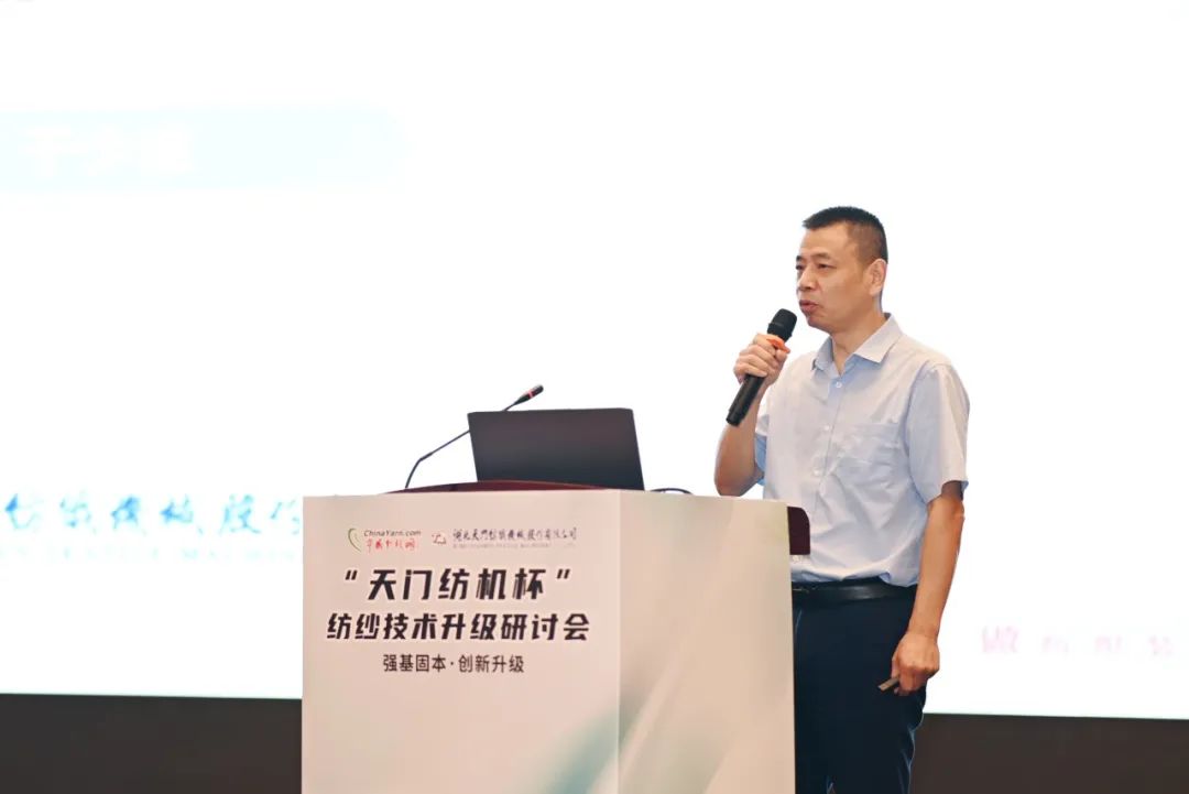 沛縣縣委常委、常務(wù)副縣長辛松在致辭中強調(diào),沛縣高度重視紡織產(chǎn)業(yè)發(fā)展,希望通過舉辦此類高水平、高規(guī)格的研討會,推動沛縣紡企技術(shù)升級和產(chǎn)業(yè)發(fā)展;沛縣紡織協(xié)會會長董良騮對“天門紡機杯”紡紗技術(shù)升級研討會在沛縣召開表示祝賀,他表示,這次活動將為沛縣紡織行業(yè)的技術(shù)整體提升、產(chǎn)業(yè)發(fā)展帶來更多的機遇。中國紗線網(wǎng)總編王果剛分析了當前紡織行業(yè)面臨的機遇和挑戰(zhàn),指出了紡企要關(guān)注的多項關(guān)鍵因素;微山縣泰豐紡織有限公司副廠長董勤楠作了題為《陸S工藝在萊賽爾紗線生產(chǎn)中的應(yīng)用實踐》的報告,分享了通過優(yōu)化工藝設(shè)計方案為企業(yè)提質(zhì)增效的創(chuàng)新成果及天門紡機T1系列并條機在生產(chǎn)線上的應(yīng)用經(jīng)驗。