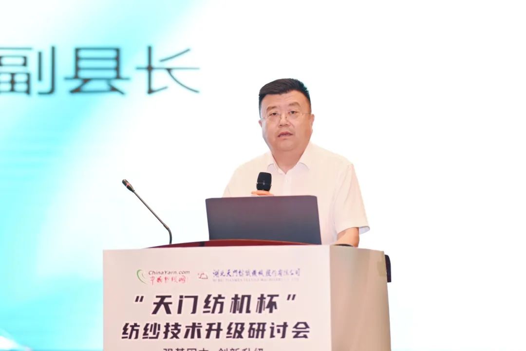 在當天下午舉行的開幕式及主題報告會上,沛縣縣委常委、常務(wù)副縣長辛松,沛縣紡織協(xié)會會長董良騮,天門紡機總經(jīng)理焦倫進,中國紗線網(wǎng)總編王果剛等領(lǐng)導先后致辭。