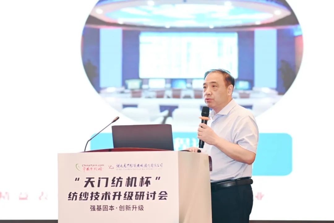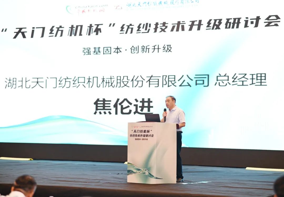 天門紡機總經(jīng)理焦倫進向蒞臨會議的領(lǐng)導、嘉賓及長期關(guān)心支持天門紡機發(fā)展的各界同仁朋友表達了誠摯的謝意,他表示,天門紡機“生產(chǎn)制造柔性化、倉儲物流自動化、信息管理現(xiàn)代化”的5G+智慧工廠項目正在不斷向前推進,我們將通過自身的數(shù)字化轉(zhuǎn)型與智能化改造,為紡織企業(yè)數(shù)字化轉(zhuǎn)型和智能化改造持續(xù)提供裝備基礎(chǔ)。并作了題為《并條機的創(chuàng)新與應(yīng)用助力紡企高質(zhì)量發(fā)展》的專題報告。他交流了天門紡機堅定不移走“專精特新”之路的工作經(jīng)驗,分享了勻整控制、在線監(jiān)控、5G+物聯(lián)網(wǎng)、自動熱交換降溫系統(tǒng)等技術(shù)創(chuàng)新成果。