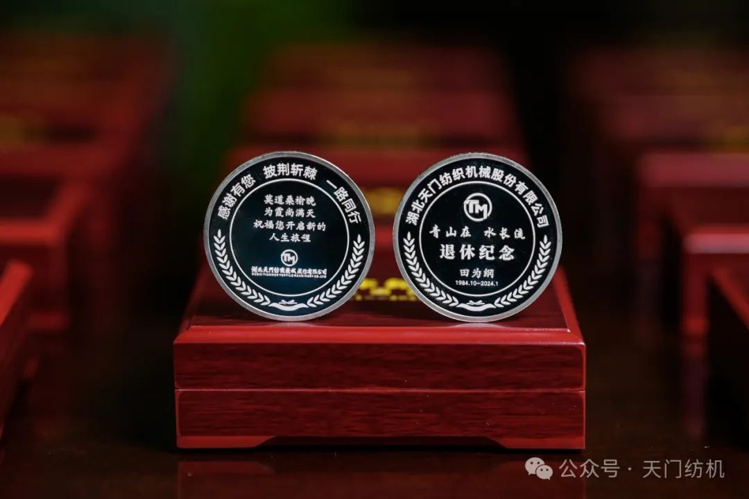 會后,沈方勇董事長為退休員工代表頒發(fā)了紀(jì)念章,大家一起合影留念。