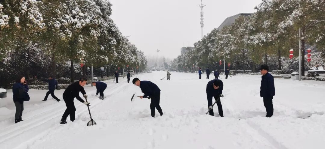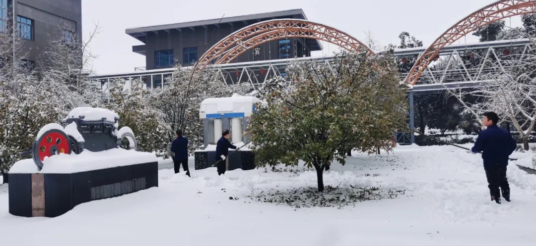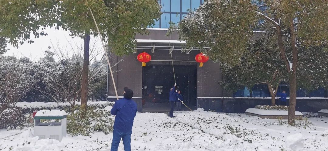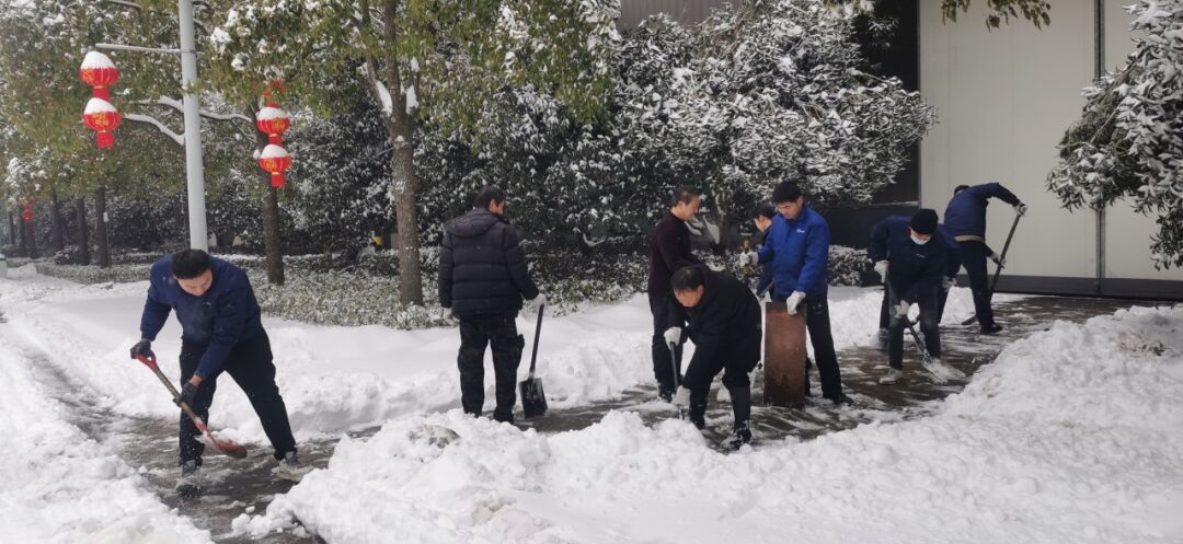 2月4日清晨,公司董事長沈方勇率先趕到公司,組織各批先期到達公司的干部員工,帶上鐵鍬和竹竿,清除路面和樹木積雪,以保證員工進出的安全。