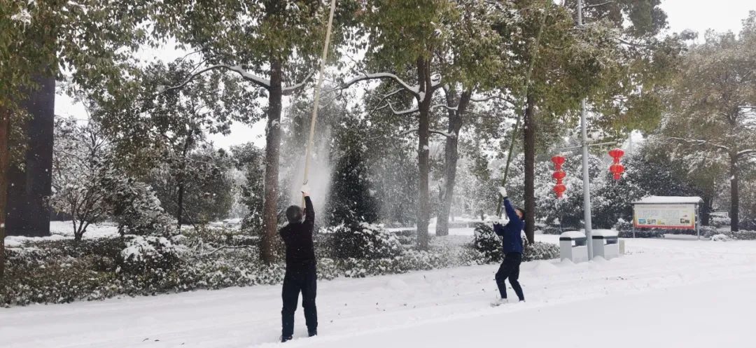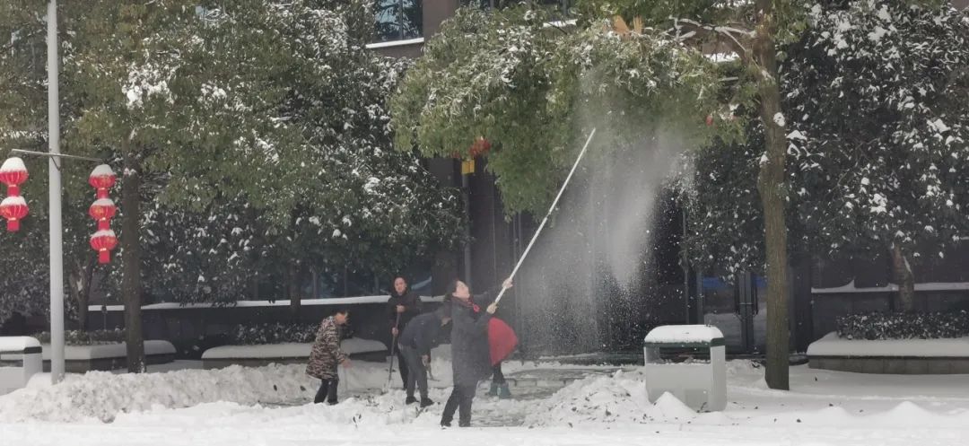 清晨的氣溫在零下4度左右,寒意刺骨。但大家不懼嚴寒,手握鐵鍬,高舉竹竿,竭盡全力清除積雪。