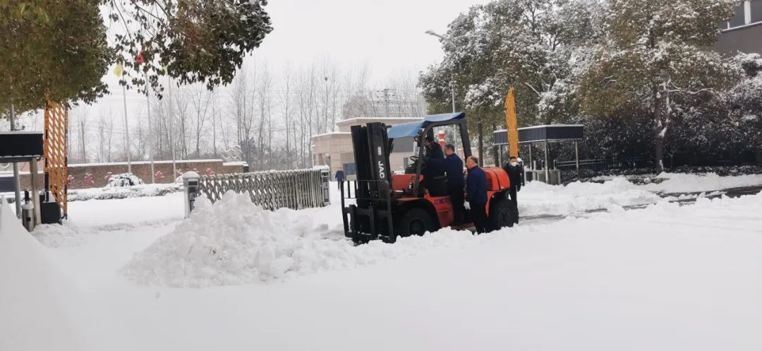 除雪工作不松勁,生產任務更不停歇。大量車間人員按時上崗,并派出多輛鏟車加快清理進度。