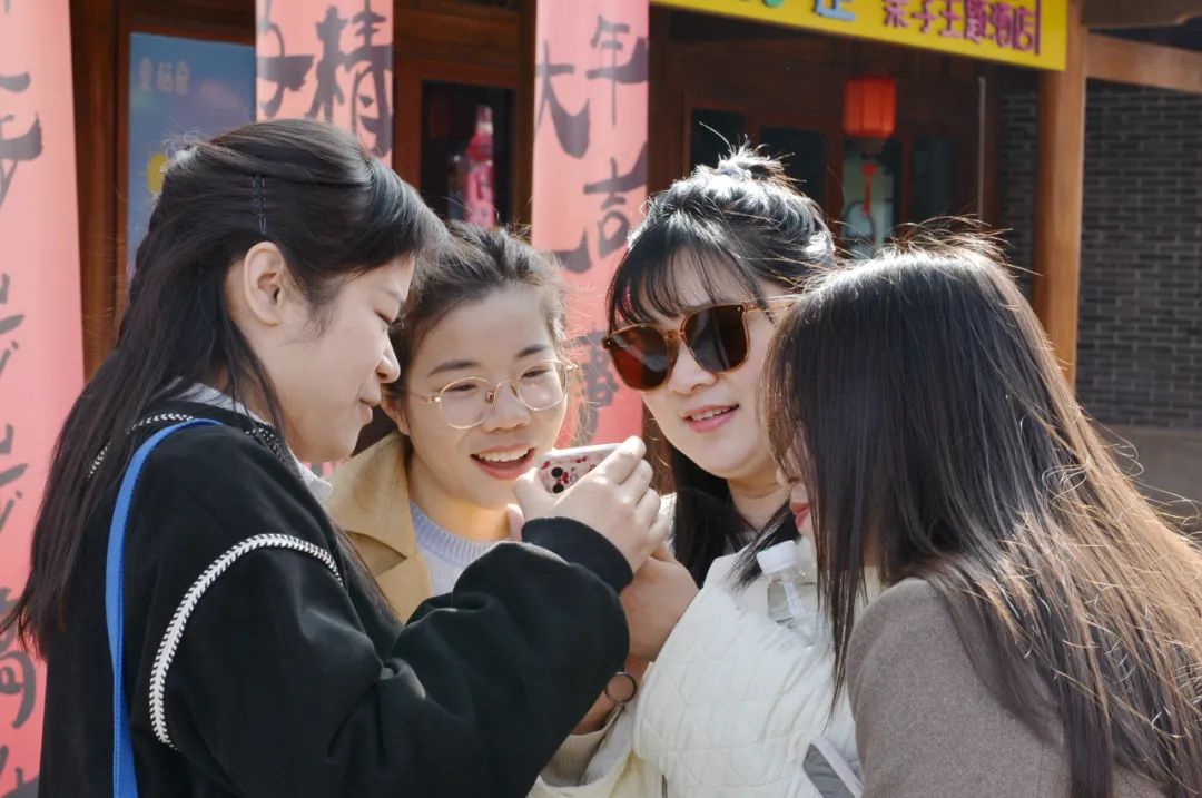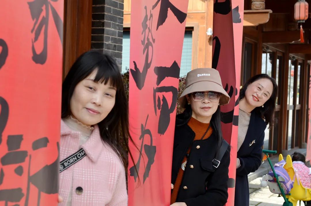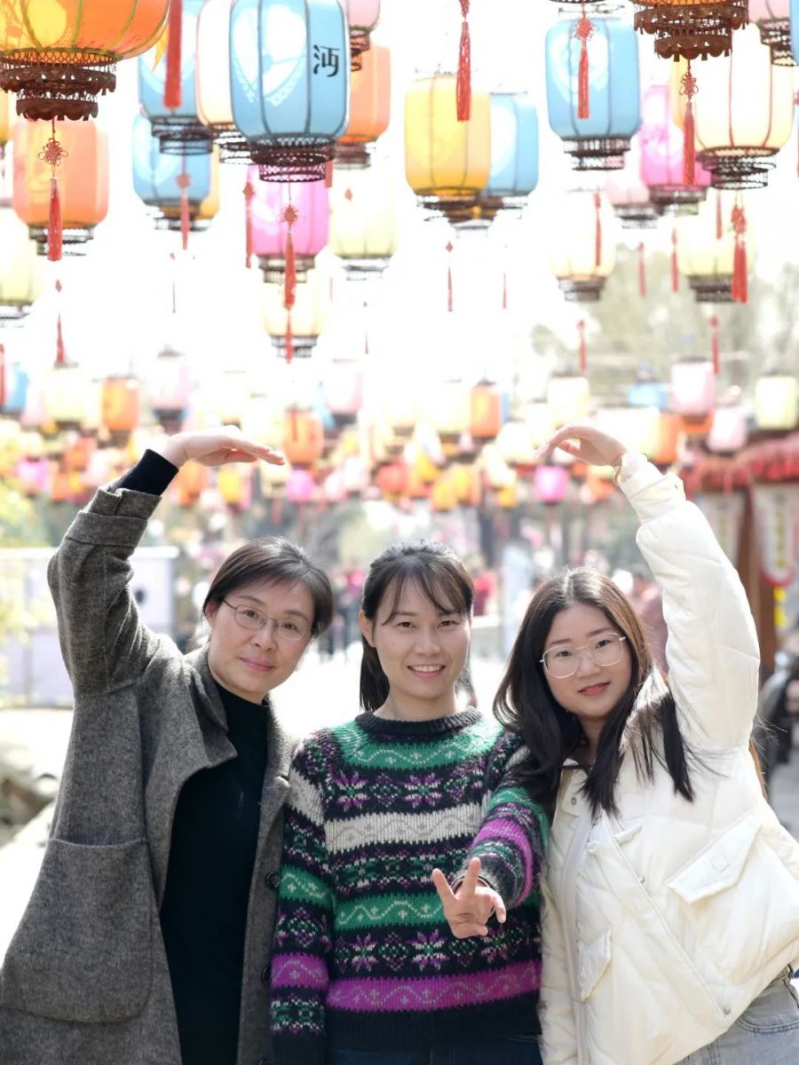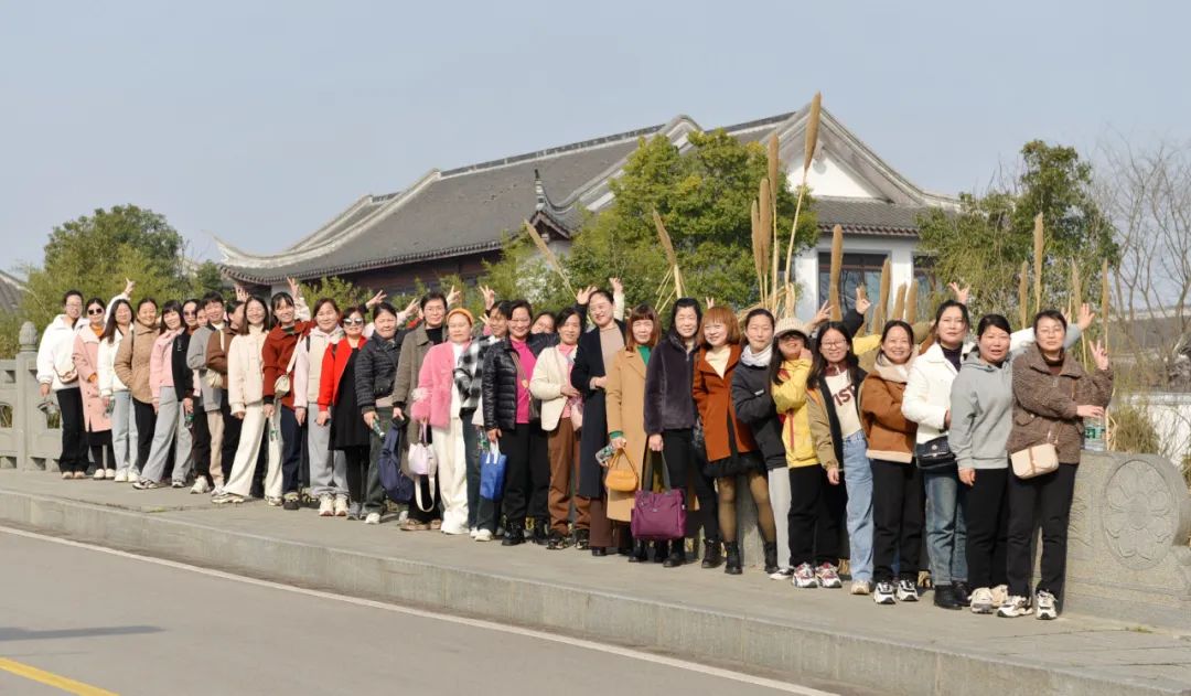 游覽過程中,女工們有的參觀小鎮(zhèn)書院,了解當(dāng)?shù)氐臍v史文化;有的在小銅人雕塑旁合影留念,定格美好時光;有的登上文昌閣遠眺,感受湖光山色。