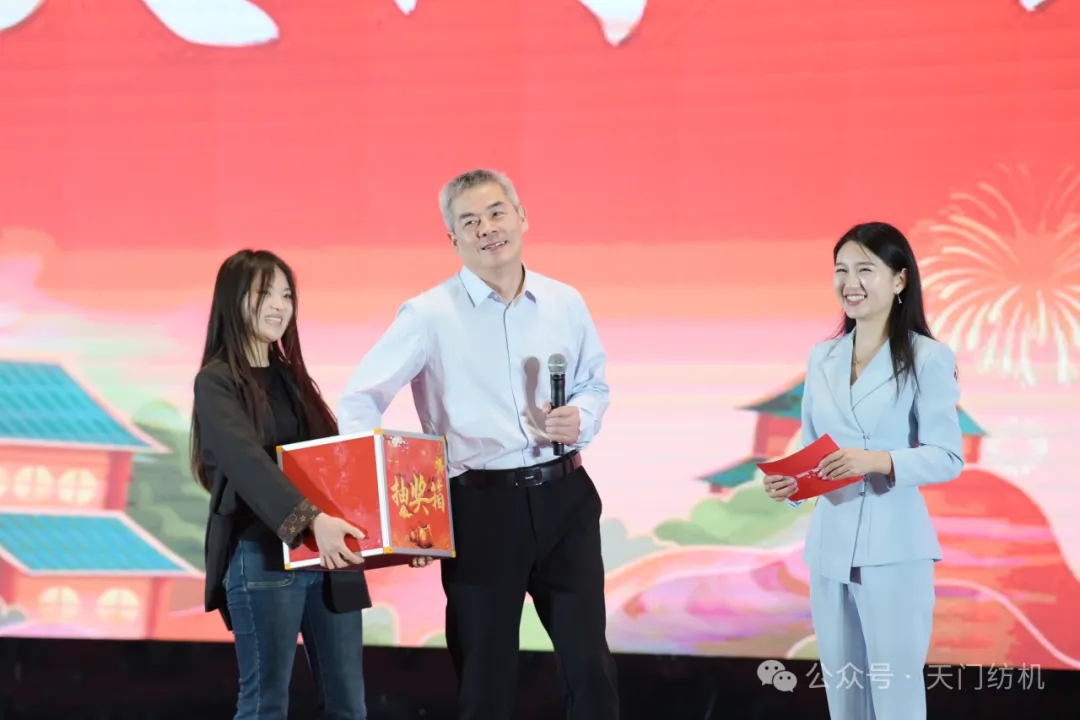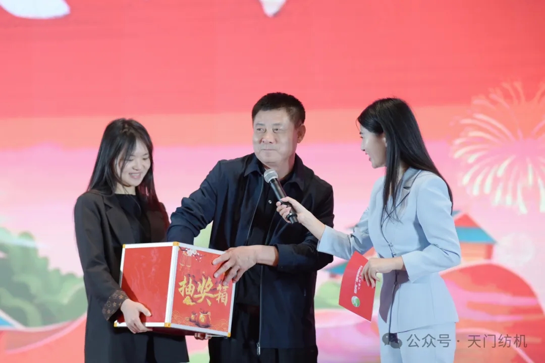 在28日的“天門紡機(jī)之夜”招待晚宴,天門紡機(jī)市場(chǎng)總監(jiān)周志宏、中國(guó)紗線網(wǎng)副主編孫其海分別致祝酒辭。酒香四溢之中,精彩的節(jié)目表演及抽獎(jiǎng)活動(dòng)把晚宴氣氛推向高潮。