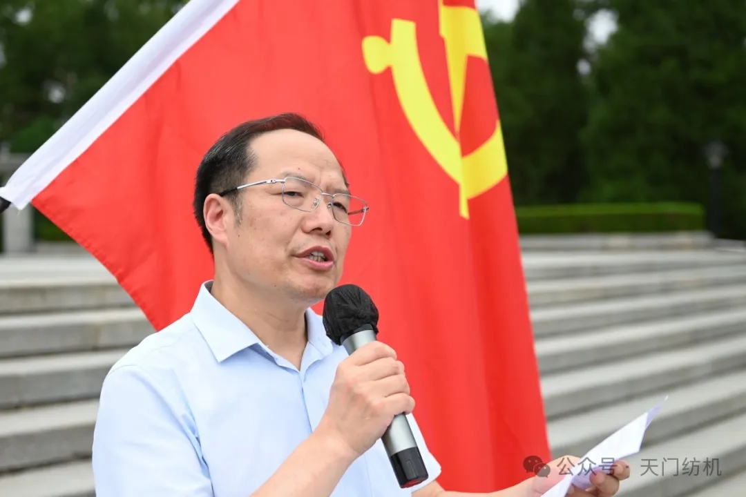 天門紡機(jī)黨委書記魯?shù)挛淖髁?ldquo;追尋紅色印記,踐行理想信念”的主旨報告。他回顧中國共產(chǎn)黨奮斗歷程時說:一百多年來,中國共產(chǎn)黨帶領(lǐng)中國人民浴血奮戰(zhàn)、篳路藍(lán)縷,從勝利走向勝利,完成了站起來到富起來再到強(qiáng)起來的偉大壯舉,實現(xiàn)了第一個百年計劃,第二個百年計劃也在如火如荼地進(jìn)行之中,以習(xí)近平總書記為核心的黨中央帶領(lǐng)全國人民以中國式現(xiàn)代化全面推進(jìn)中華民族的偉大復(fù)興。他強(qiáng)調(diào):無論歲月更迭、企業(yè)變遷,中國共產(chǎn)黨組織始終是天門紡機(jī)的政治引領(lǐng)、精神支柱、行動指南;無論是國有企業(yè)時還是民營企業(yè),黨員干部始終是戰(zhàn)斗堡壘、時代先鋒,在企業(yè)生產(chǎn)經(jīng)營活動中發(fā)揮著不可替代的作用。他希望全體黨員干部不忘初心,牢記使命,始終把企業(yè)放在心上,把工作重?fù)?dān)扛在肩上,為天門紡機(jī)高質(zhì)量發(fā)展貢獻(xiàn)應(yīng)有力量。