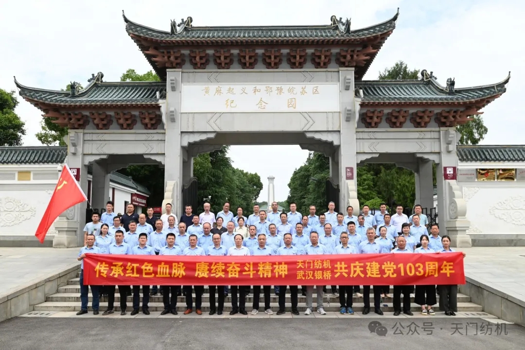 7月1日上午,天門紡機(jī)聯(lián)合武漢銀橋組織65名黨員奔赴中國第一將軍縣紅安,開展以“追尋紅色印記,凝聚奮進(jìn)力量”為主題的黨日活動,以此慶祝中國共產(chǎn)黨誕辰103周年。