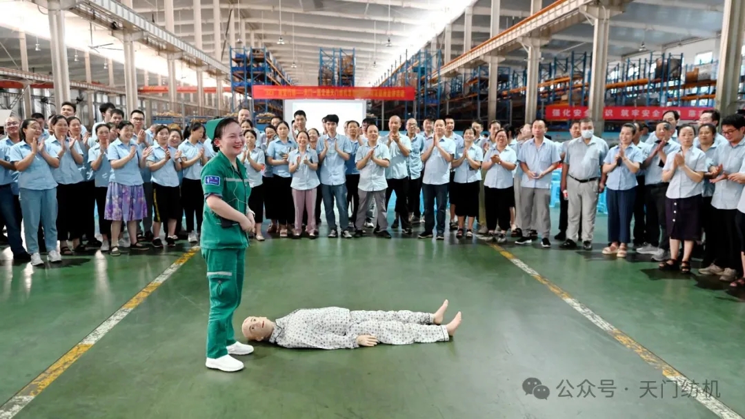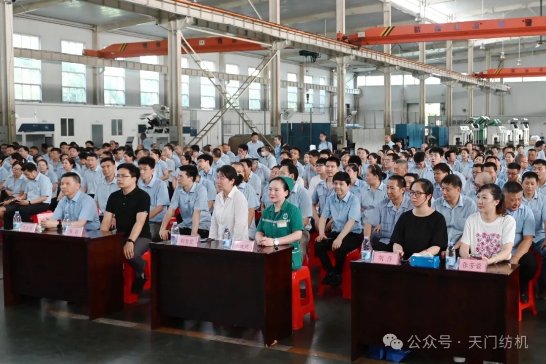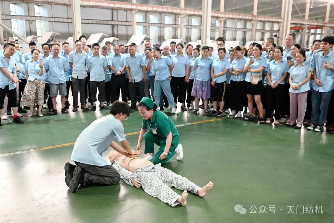 室外赤日炎炎,酷暑難當(dāng);室內(nèi)座無(wú)虛席,氣氛熱烈。2024年7月17日下午,天門(mén)紡機(jī)在生產(chǎn)現(xiàn)場(chǎng)組織了一場(chǎng)別開(kāi)生面的健康知識(shí)及急救技能培訓(xùn)活動(dòng),天門(mén)市第一人民醫(yī)院的多位醫(yī)療專(zhuān)家應(yīng)邀來(lái)公司進(jìn)行健康知識(shí)講座和急救實(shí)操演示。