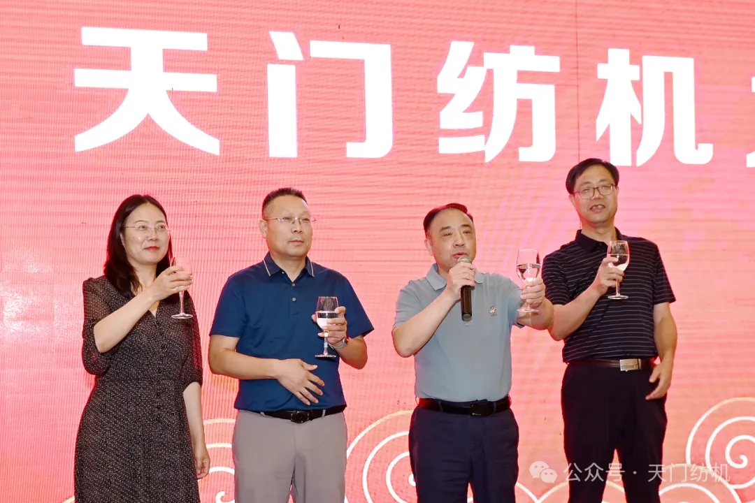 陜西省紡織科學研究院有限公司黨委書記、總經(jīng)理徐遠志,天門紡機總經(jīng)理焦倫進,天門紡機副總經(jīng)理肖少華,《棉紡織技術(shù)》期刊社副總經(jīng)理冉軍麗答謝晚宴共同祝酒