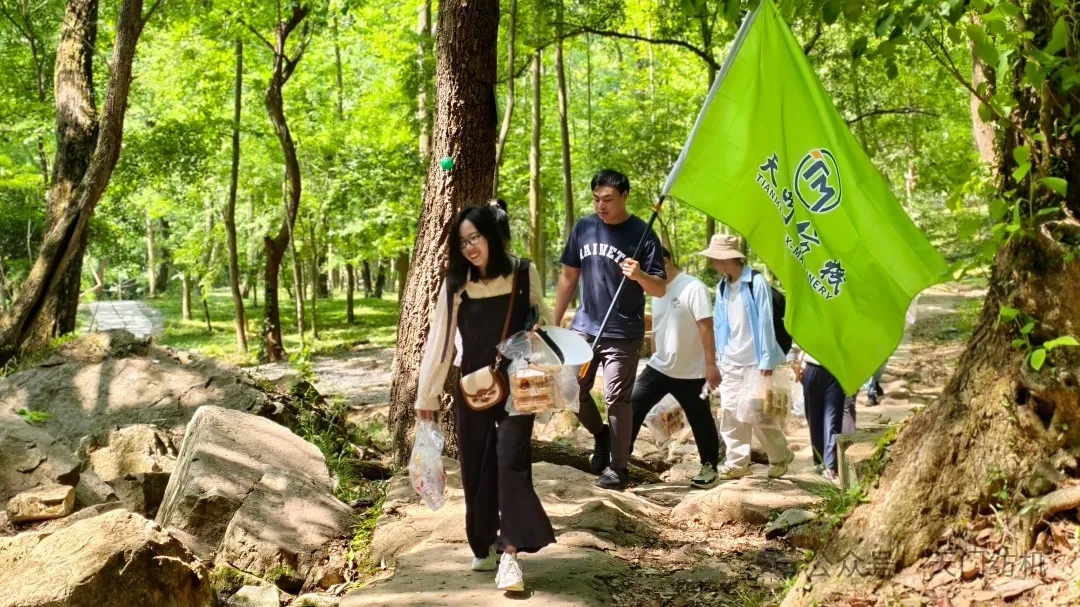 抵達(dá)大口國家森林公園后,大家以青山為卷、以腳步為筆,開啟了一場“意志磨礪之旅”。崎嶇的山路考驗著徒步登山者的體力與毅力。面對陡坡險徑,大家互伸援手、默契配合,一句句“抓緊我”“注意腳下”的叮囑傳遞著溫暖。最終,全員成功登頂觀景臺,俯瞰層巒疊翠,用合影定格了“青春同心”的動人畫面。