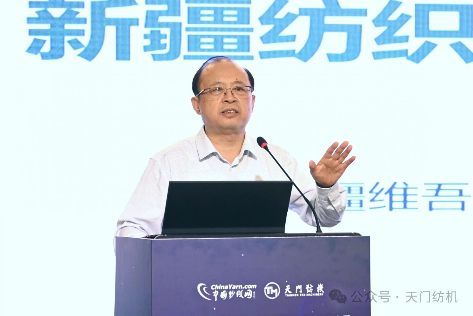 全國(guó)政協(xié)委員、新疆維吾爾自治區(qū)棉花產(chǎn)業(yè)發(fā)展領(lǐng)導(dǎo)小組辦公室主任梁勇對(duì)會(huì)議表示了祝賀,并在《新疆紡織服裝產(chǎn)業(yè)最新政策解讀》報(bào)告中闡述了“新九條”優(yōu)惠政策的設(shè)計(jì)思路與依據(jù),明確了行業(yè)發(fā)展戰(zhàn)略。他指出,新疆發(fā)展紡織產(chǎn)業(yè)具備眾多優(yōu)勢(shì),是大勢(shì)所趨。他強(qiáng)調(diào),當(dāng)前新疆紡織正處于加速增長(zhǎng)階段,市場(chǎng)競(jìng)爭(zhēng)也會(huì)更加激烈,但是,一定要理性對(duì)待競(jìng)爭(zhēng),堅(jiān)決抵制“內(nèi)卷”。