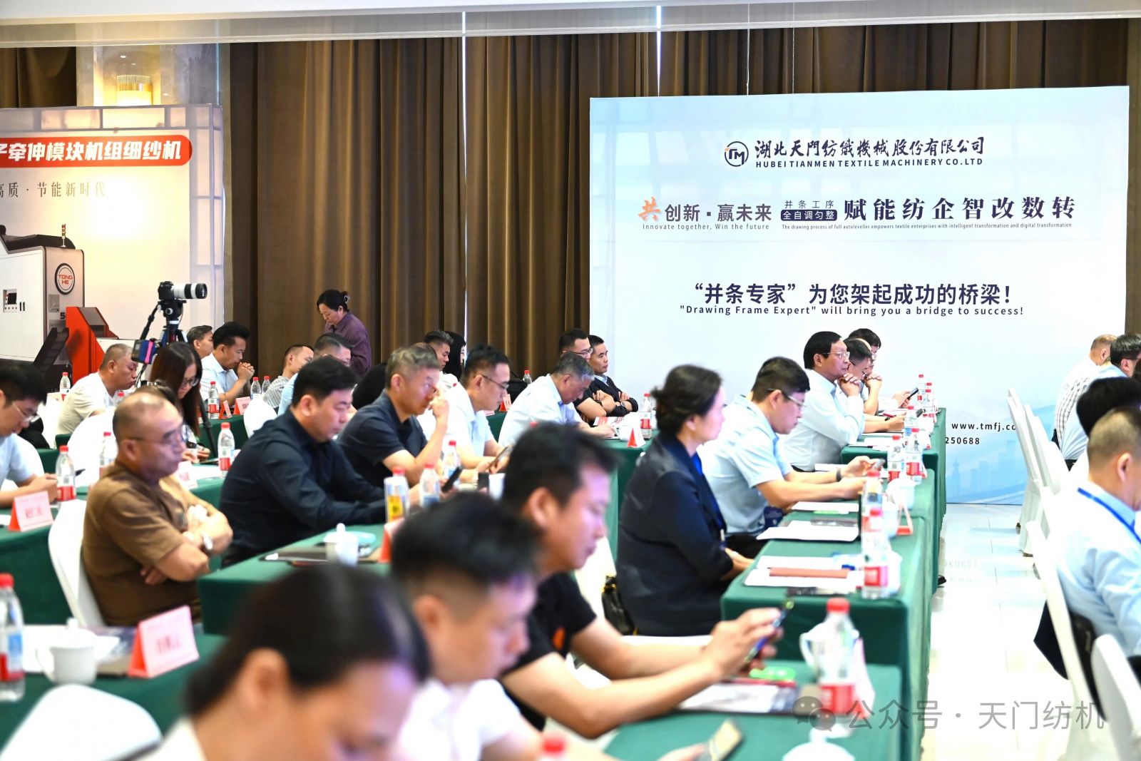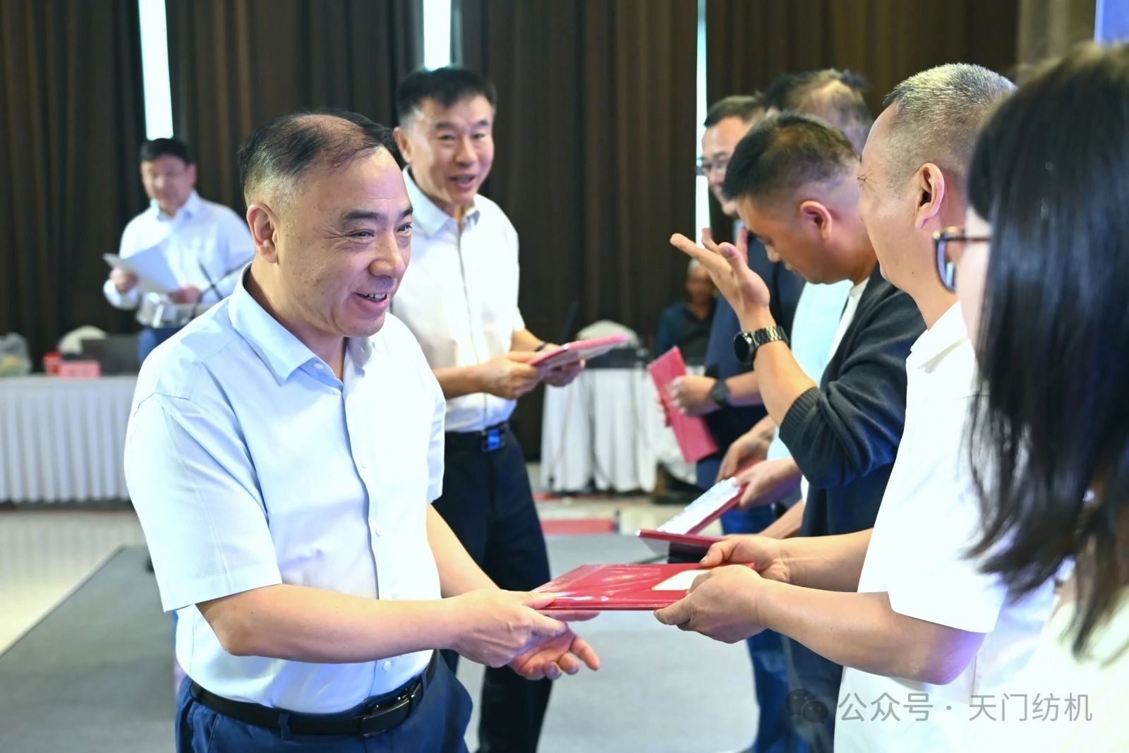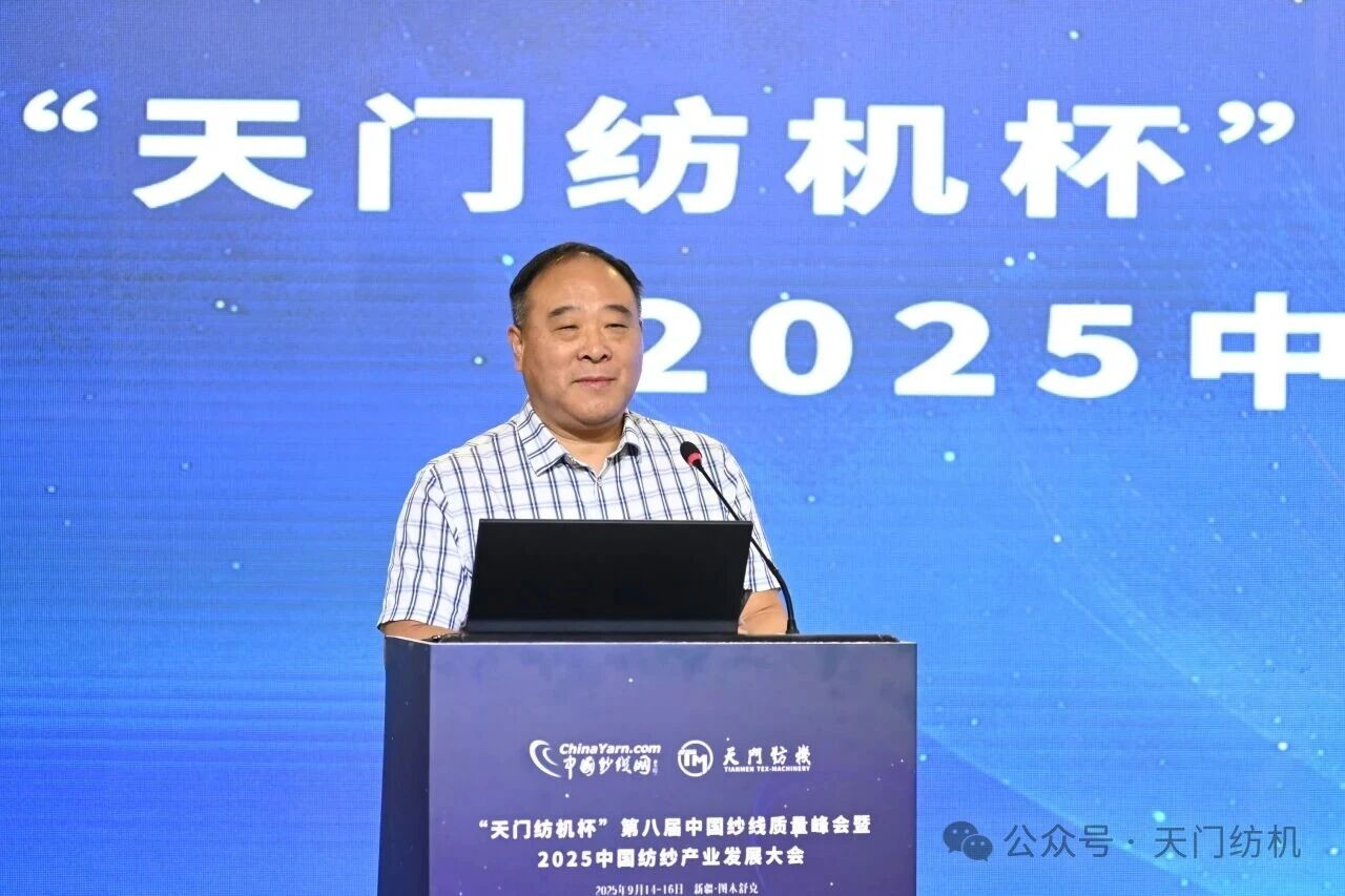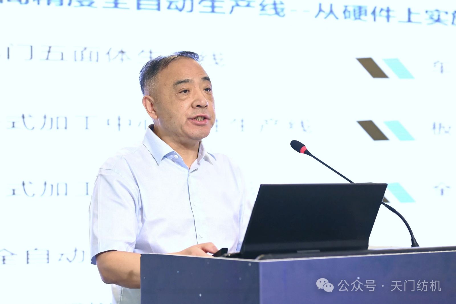 天門(mén)紡機(jī)董事長(zhǎng)沈方勇在致辭中分享了天門(mén)紡機(jī)四十余年專注并條機(jī)研發(fā),從小作坊逐步發(fā)展成為國(guó)家重點(diǎn)專精特新小巨人企業(yè)及榮獲“單項(xiàng)冠軍產(chǎn)品”稱號(hào)的現(xiàn)代化企業(yè)的奮斗歷程。他指出,當(dāng)前行業(yè)正處于重要發(fā)展窗口,本次峰會(huì)占據(jù)天時(shí)地利人和,注定會(huì)收獲滿滿。他強(qiáng)調(diào),紡織工業(yè)不僅是國(guó)家經(jīng)濟(jì)的重要支撐,更是增強(qiáng)綜合國(guó)力的關(guān)鍵力量。他呼吁,紡織同仁一定要堅(jiān)定信心、強(qiáng)化合作,以質(zhì)量為核心,共同提升中國(guó)紡織裝備的國(guó)際競(jìng)爭(zhēng)力。