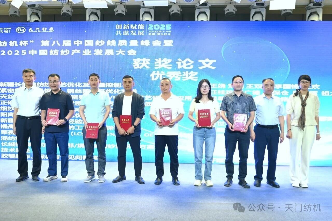 開(kāi)幕式上,隆重舉行了“天門(mén)紡機(jī)杯”第八屆中國(guó)紗線質(zhì)量峰會(huì)獲獎(jiǎng)?wù)撐念C獎(jiǎng)活動(dòng),新疆維吾爾自治區(qū)紡織工程學(xué)會(huì)理事長(zhǎng)、新疆大學(xué)紡織與服裝學(xué)院院長(zhǎng)夏鑫,天門(mén)紡機(jī)總經(jīng)理焦倫進(jìn),中國(guó)紗線網(wǎng)總裁鞠彥軍為獲獎(jiǎng)作者頒發(fā)了證書(shū)和獎(jiǎng)金。