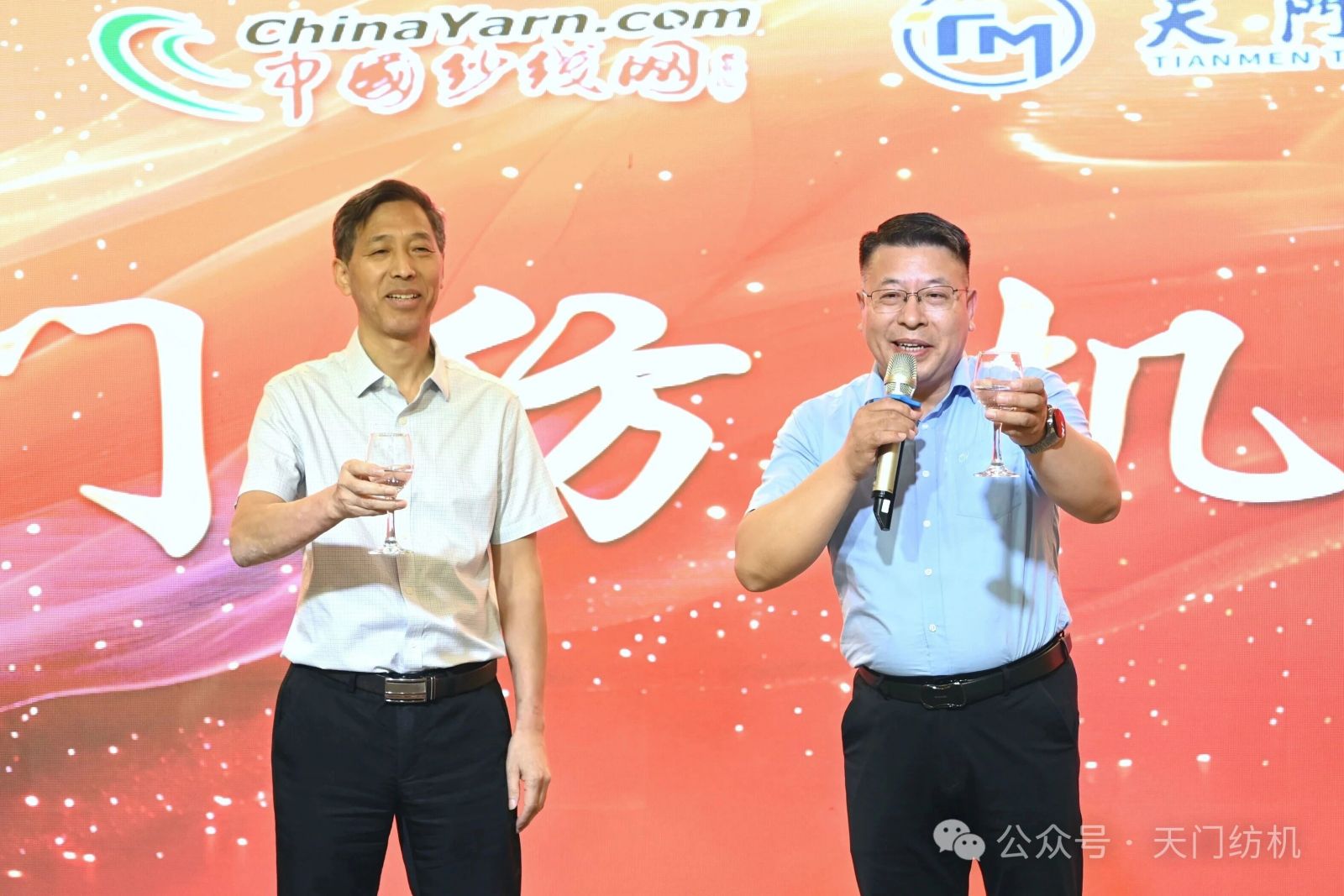 中國(guó)紗線網(wǎng)常務(wù)副總裁孫其海(左)、天門(mén)紡機(jī)市場(chǎng)總監(jiān)王繼文(右)為晚宴致辭